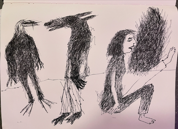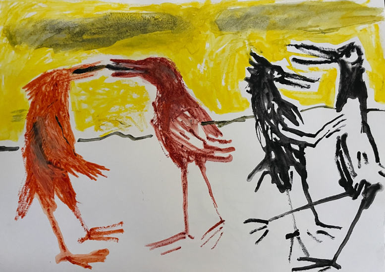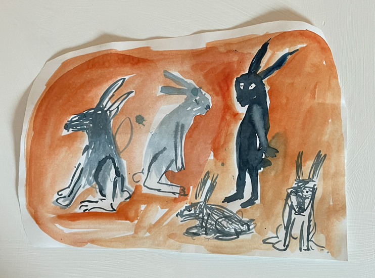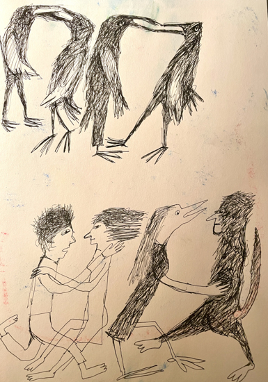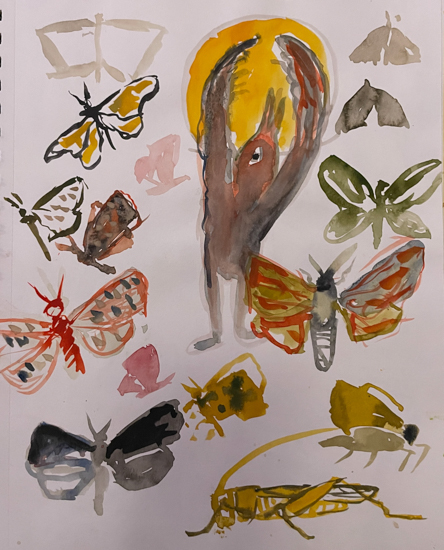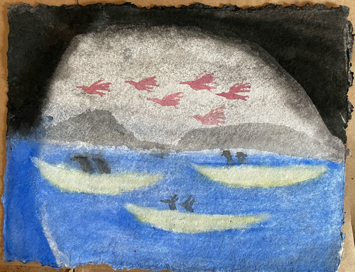 Unframed drawings, and small Gouache, Watercolor paintings. Mostly 8×10 inches.
