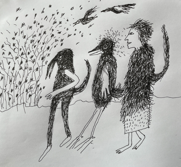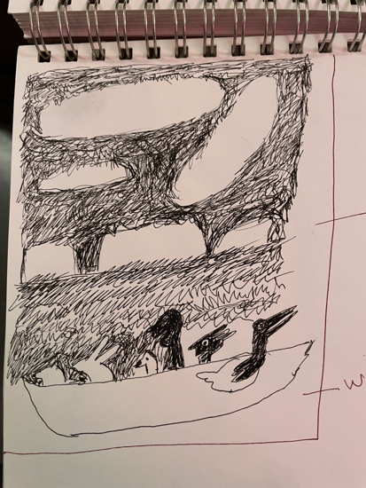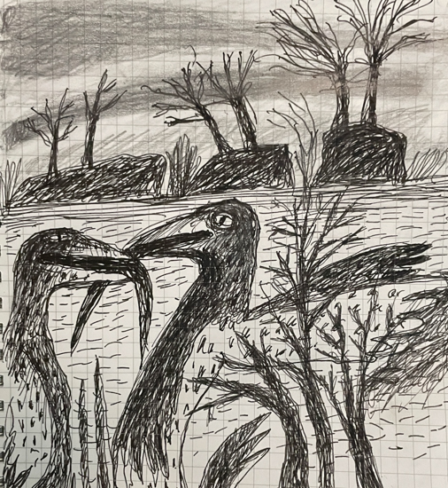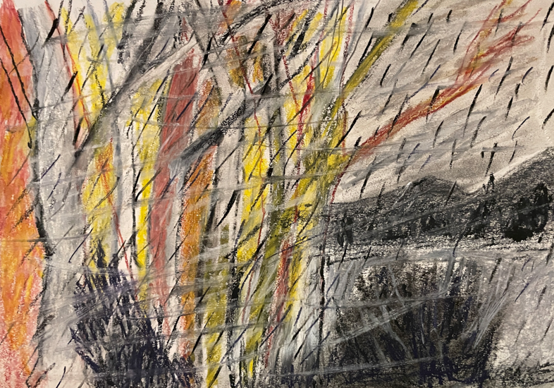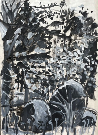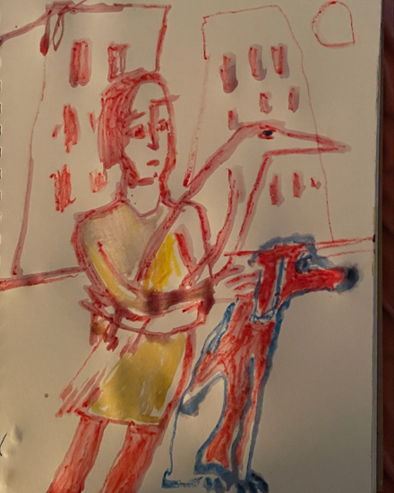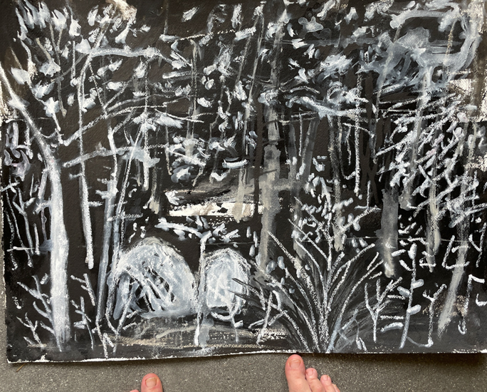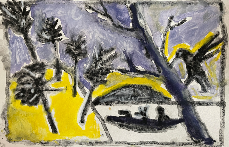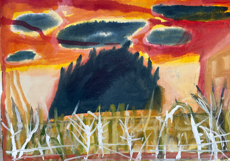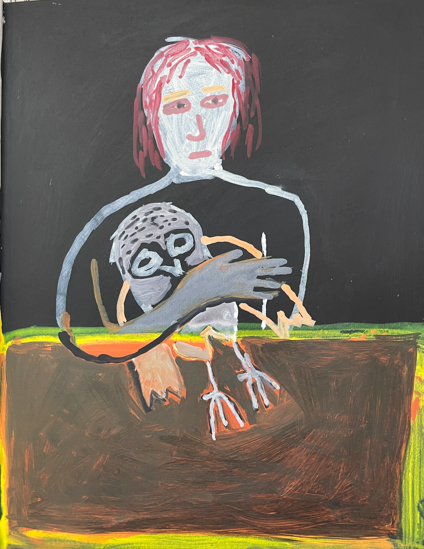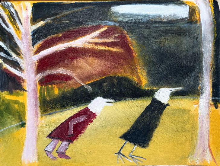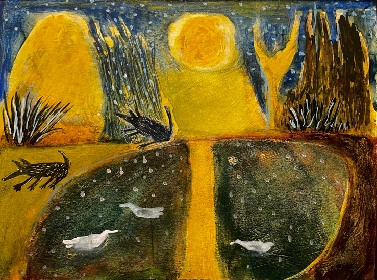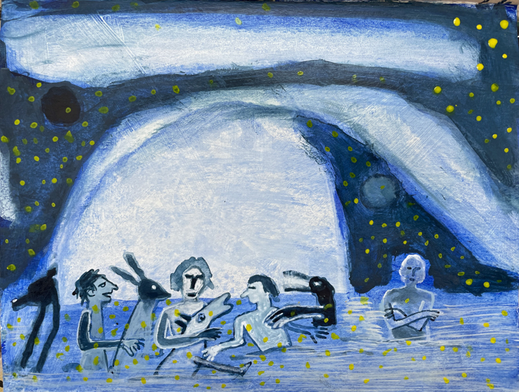 "Anna Dibble's winsome world of imaginary climate-based landscapes speaks to people experiencing both vulnerability and resilience. We see them in boats on what she calls 'early oceans' and we see them walking alone with a dog in beautifully but perhaps wounded surroundings."